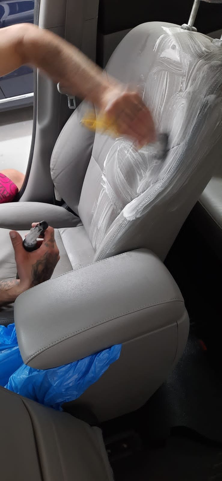 Higienização e limpeza interna completa do veículo, utilizando máquina extratora.