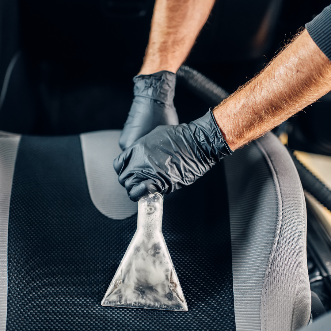 Higienização e limpeza interna completa do veículo, utilizando máquina extratora.